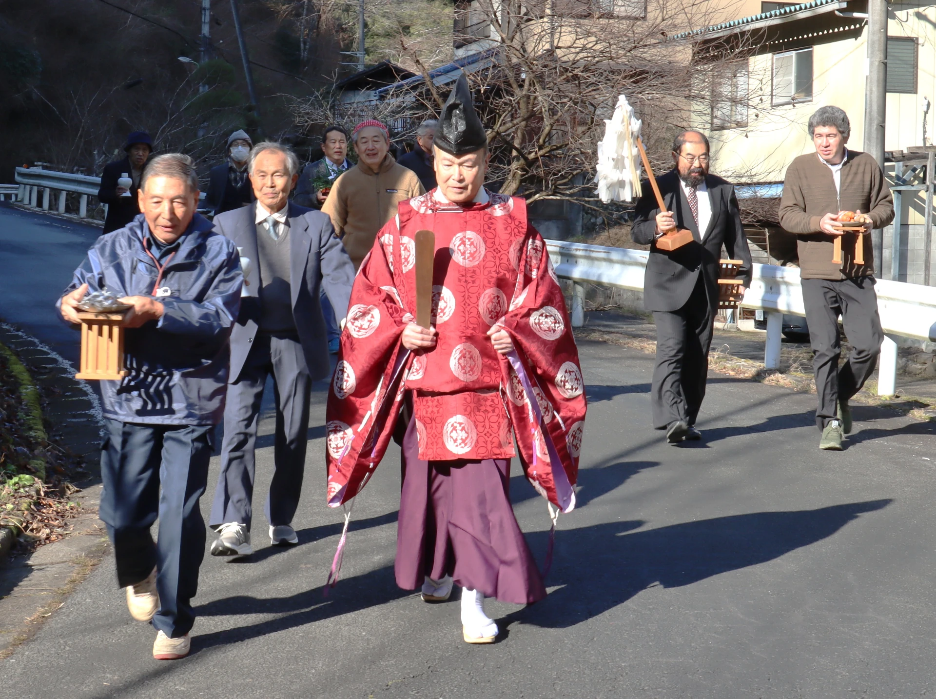 元旦祭は、氏神様である「山祇神社」の新年初めの祭典で、山祇神社へ神主と共に集落の氏子が集い、祭事が行われます。