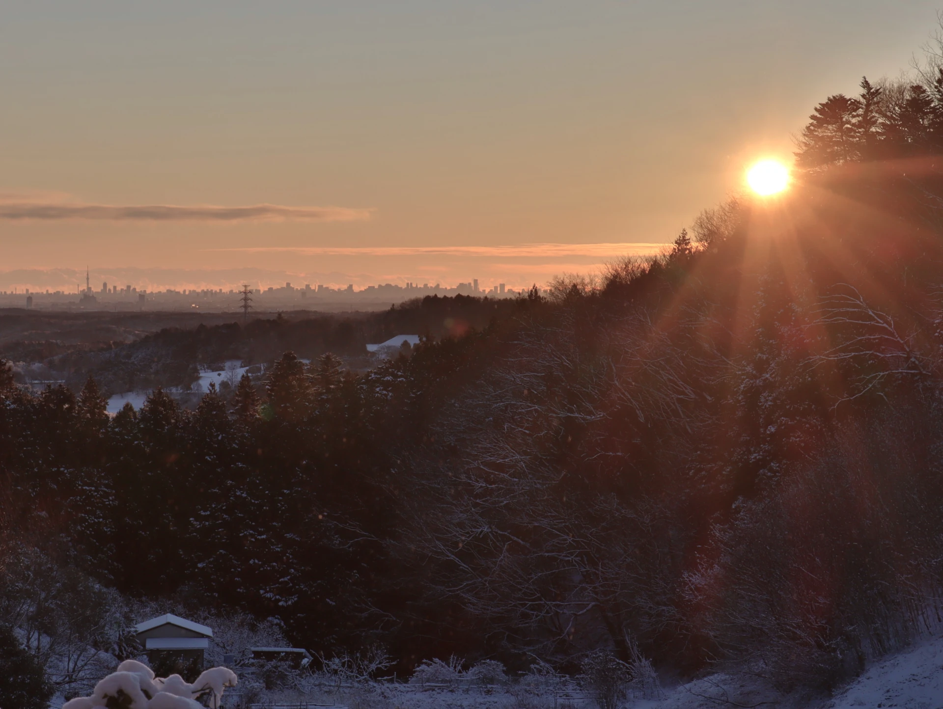 暮れから晴天が続いていましたが、元旦は東京方面に厚い雲が残り、日の出時間の6時50分には太陽は顔を見せず、雲の隙間から顔をのぞかせたのは7時10分ぐらいでした。
